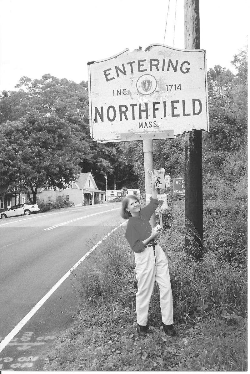 Judy Wells (above) on the Connecticut River, near Northfield; (below) entering Northfield, Massachusetts, Phebe Dickinson's home town.